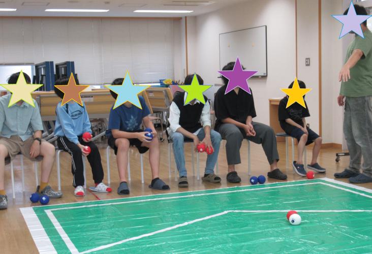 ![]() 夏休み企画としてボッチャを行いました。職員さんの説明を聞いてゲームを スタートします ![]() みんなで作戦を立てながらボールを投げていきます。 ![]() はたしてボールの行く先は⁉思ったところにうまくボールは転がったかな? |